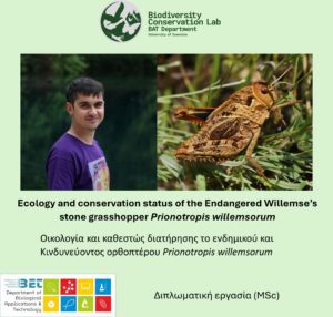 BCL also in collaboration with the Management Unit of the Protected Areas or Epirus Region presented a poster for the species under the title: Noutsou et al. 2022 Conservation actions for the Epirus grasshopper Chorthippus lacustris, which is available here